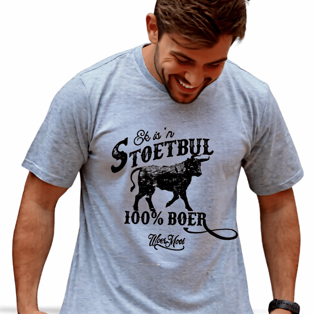 The Woesmooi Stoetbul T-shirt is made of a tri-blend cotton-poly mix. Tri-blend fabrics combine the best that cotton, polyester, and rayon have to offer. The cotton portion of the tri blend makes the fabric breathable and durable. The polyester makes the fabric durable and fast drying. You will not only feel the difference in comfort but it will soon become an essential favourite to your wardrobe.